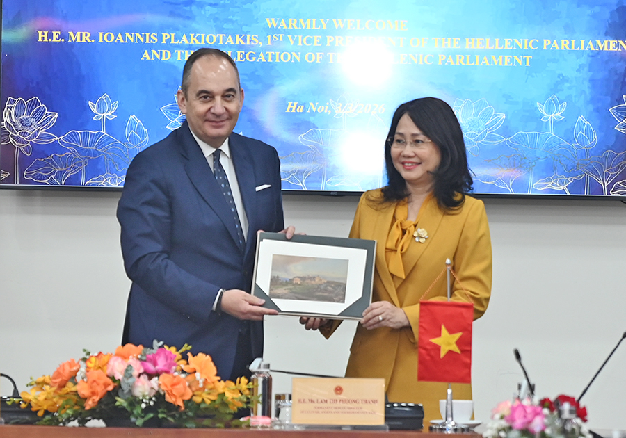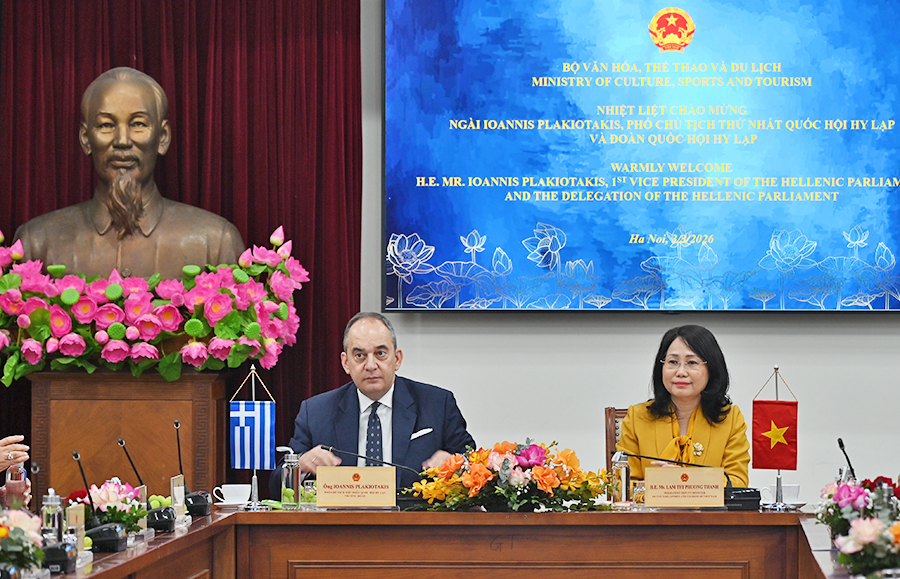 Trân trọng cảm ơn sự đón tiếp nồng ấm từ phía Bộ VHTTDL và cá nhân Thứ trưởng Thường trực Lâm Thị Phương Thanh dành cho đoàn, Phó Chủ tịch thứ nhất Quốc hội Hy Lạp Ioannis Plakiotakis cho rằng, Việt Nam và Hy Lạp có nhiều tiềm năng hợp tác phát triển VHTTDL.