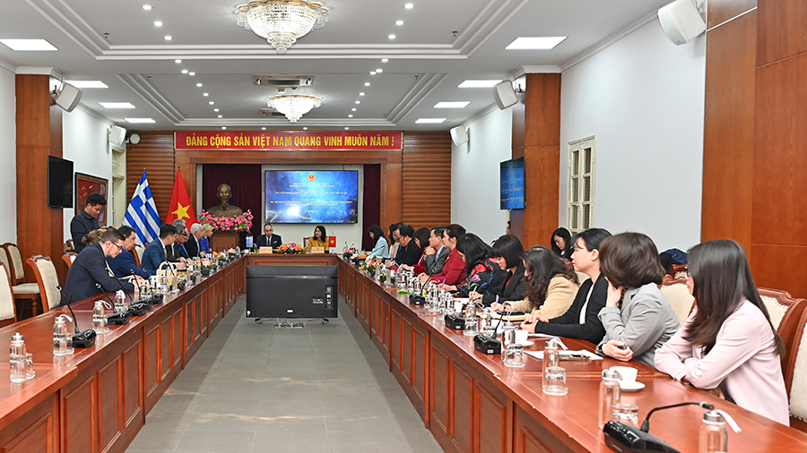 Thứ trưởng Thường trực Bộ VHTTDL Lâm Thị Phương Thanh tiếp Phó Chủ tịch thứ nhất Quốc hội Hy Lạp Ioannis Plakiotakis cùng đoàn công tác (Ảnh: TITC)